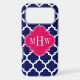 Navy Wht Moroccan #5 Raspberry 3 Initial Monogram