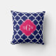 Navy Wht Moroccan #5 Raspberry 3 Initial Monogram Cushion
