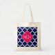 Navy Wht Moroccan #5 Raspberry 3 Initial Monogram Tote Bag