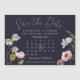 Announce your wedding date in style with these simple Navy Blue wild flower save the date magnetic cards. The design features simple typography and a personalised wedding calendar on which you can mark your wedding day with a cute white heart. Cards can be easily customised with the details of your wedding.