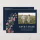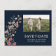 Navy Wildflowers Save The Date with Photo Postcard