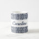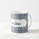 This illustration of white crocheted lace covers a background of dark colour for high contrast. Makes a great personalised gift for a teacher, mother, sister or any other crocheter in your life. Design available in evergreen, classic blue, orange peel, flame scarlett (red), maroon, teal, pink and navy. Also available in other colours with cream lace. Matching products available.