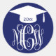 Navy Wt Vine Script Monogram Graduation DIY BG Classic Round Sticker