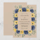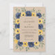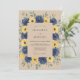 This design features a vibrant border of deep navy blue and sunny yellow blossoms, interspersed with lush green foliage. The arrangement evokes a sense of cheerful abundance and natural beauty, creating a visually striking and romantic aesthetic.