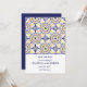 This Mediterranean Inspired Wedding save the date features a flamboyant and stylish traditional Spanish tile borders in yellow and navy blue.
