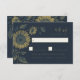 This coordinating RSVP card is part of the elegant sunflower wedding stationery suite. Set against a deep navy background, golden etched-style sunflower illustrations add a rustic yet refined touch. Guests are invited to respond with meal selections and can conveniently RSVP online via the discreet QR code on the back. A thoughtful blend of classic charm and modern functionality. Please note: the gold is a printed colour, not foil or metallic.