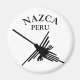 Famous Nazca Lines drawing based on the desert hummingbird geoglyph with curved text. Black design version.