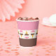 Neapolitan ice cream stripes in strawberry, vanilla, and chocolate flavours. Accented with cute Neapolitan ice cream cones. Customise it on this paper party cup for birthdays or any occasion! Add any text if desired.