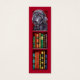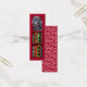I WUFF to Read! is on the back side of this book mark while a sweet Neapolitan Mastiff pokes his head through a bookshelf with books on the front.