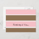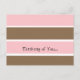 A sweet way to say 'I'm thinking of you' on this strawberry pink, vanilla and chocolate stripe postcard. Customise as desired.