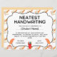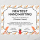 Celebrate your student's exceptional penmanship with the "End of Year Neatest Handwriting Student Recognition Award." This beautifully designed certificate is perfect for acknowledging hard work and dedication in achieving the neatest handwriting. Ideal for teachers and parents alike, it's a wonderful way to honour and motivate young scholars.