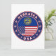 Badge of Nebraska with flag of Nebraska and flag of USA colours, rounded shape.