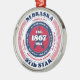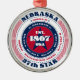 Show your state pride this holiday season with this unique Christmas ornament dedicated to Nebraska, the 37th state. It has red, white, and blue patriotic colours with a circular typography design on a white background. The text includes facts about the state, such as its name, capital, state abbreviation, region, time zone, geographic coordinates, the year of its statehood, and its resident's name. It's a great gift for those who wish to celebrate their state or for those who are feeling nostalgic about their home state.