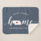 Show some home state pride with this cute rustic blue throw blanket featuring "home" in white calligraphy script lettering with a silhouette map of the state of Nebraska standing in for the letter "O." A red heart illustration inside the state map completes the design; you can change the position of the heart to your home city by opening the design tool and dragging the heart shape to your favourite spot. Personalise with your home city, family name and year established to create a perfect and memorable housewarming gift or addition to your new home.