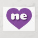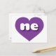 This postcard features a vibrant purple heart containing bold, rounded, white lower case letters ne, a playful version of the abbreviation for Nebraska, the cornhusker state. The reverse side of the postcard is blank, awaiting your handwritten sentiments or customised text.