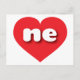 This postcard features a vibrant red heart containing the bold, white, rounded lower case letters ne, a playful abbreviation for Nebraska, the cornhusker state. The reverse side of the postcard is blank, awaiting your handwritten sentiments or customised text.