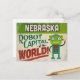 A funny Nebraska vintage travel postcard featuring a friendly robot with fun retro style text that says, "Nebraska, Robot Capital of the world!"
