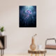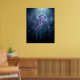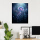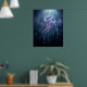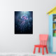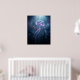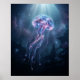 A luminous nebula jellyfish drifts gracefully through a surreal cosmic ocean where deep sea meets outer space. Its translucent bell glows with vibrant hues of blue, violet, and pink, while flowing tentacles shimmer with stardust and bioluminescent light. Surrounded by a mysterious abyss filled with floating particles and soft nebula fog, the scene evokes calm, elegance, and wonder. This dreamy fusion of marine life and cosmic beauty is perfect for serene interiors, modern decor, and collectors of ethereal, high-end fantasy art.