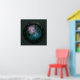 Colourful view of outer space as seen through a steampunk style heavily bolted porthole.