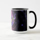 Nebula fantasy space design for a jumbo mug with black on the handle and the inside. The mug has nebula gasses surrounding a passion plant in lavender with space and blue stars. Pretty and unusual design. Would also be a nice gift.