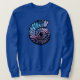 Sweatshirt in a spiral, nautilus sea shell patterned with a blue and violet nebula with stars