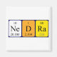 Nedra spelled out as Ne D Ra (Neon Deuterium Radium) on a magnet for the scientist in you.