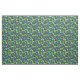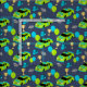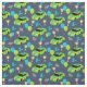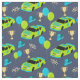 Sew custom gifts and decor for fourth birthday parties with these patterned fabric. It features illustrations of stock car style race cars in lime green and bright blue with the number 4 on them and the slogan NEED 4 SPEED. Along with the cars are coordinating lime green and bright blue balloons, trophies, racing helmets and chequered flags. The illustrations are set against a navy blue background.