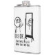 The flask itself is fine. It’s a cheap flask, obviously bought in bulk, however am prepared to overlook that. Given that it is a personalized item, I would have liked to have seen gift boxing instead of the generic packaging. Terrible printing, and/or quality. It’s a cheap, tacky vinyl. It is not cut straight and is also applied in a way that it is overhanging the bottom, causing the glue to catch on items and it will eventually roll and tear, damaging the wrap.
