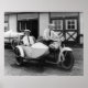 Vintage photo of Jimmy Murphy, winner of 500 - mile auto race at Indianapolis, Indiana, May 30, 1922, and mechanic Ernie Olson, seated on Harley Davidson motorcycle and in sidecar. Photo taken June 22, 1922. Race car in the background. LOC original medium: photographic print.