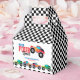 NEED FOUR SPEED MONSTER TRUCK BIRTHDAY PARTY THEME. COLORFUL TRUCKS WITH BLACK AND WHITE GROOVY CHECKERED PATTERN RETRO STYLE EDITABLE KIDS BIRTHDAY.