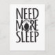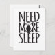 Sleepy yawn slogan text graphic postcard by Sarah Trett. Reads Need more sleep.