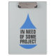 One huge blue drop, holding black text "IN NEED OF SOME PROJECT". Solid background colour can be replaced. Text can be edited. Find more clipboards at KreaturShop.