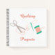 This notebook is expressing your hand-made projects.  Are you a quilter?  Do you sew?  Are you learning embroidery?  This notebook can be customised with your name or title.  The front and back has my digital design of scissors, needle and a spool of thread.