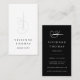 Elegant vertical business cards for seamstresses, fashion designers, stylists, tailors and more feature a sewing needle and thread in chic pale grey with two lines of custom text beneath in crisp black. Customise the back with your full contact details in white lettering on a black background, beneath a matching sewing needle illustration.