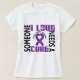 Put on your purple to support the loved one in your life battling Crohns Disease while advocating the cure with Someone I Love Needs A Cure t-shirts, gifts, and apparel featuring a purple Crohns Disease awareness ribbon centred within an eye-catching square pattern of bold text.