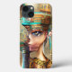 Abstract digital portrait of the Egyptian goddess, Queen Nefertiti, in golds and greens. Wombo Dream AI and artist collaboration.