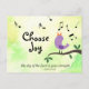 Inspirational scripture postcard depicts the greeting 'Choose Joy' with a cute singing bird and musical notes. It features Bible Verse Nehemiah 8:10, "The Joy of the Lord is your strength." The back greeting can be customised to the details of your choice.~