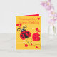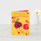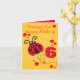 Cute modern graphic girls ladybug age 6 birthday card. Personalise this item to suit your requirements. Uniquely designed and illustrated by Sarah Trett.