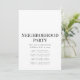 Welcome your friends and new neighbours with our *Neighbourhood Party* housewarming invitation! Featuring a crisp white background and playful script font that pops in the centre, this invite captures the fun and excitement of your get together. Personalise the party details below to include the date, time, and location of your event. Whether you're sending out digital invites or ordering prints to mail, this invitation is perfect for kicking off new beginnings in style!
