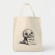 The printing came out very well, better than I had anticipated. The natural color fabric is sturdy with strong seams and comfortable handles. This tote fits easily over my shoulder. As it is filled, the bottom flattens out--very cool! I would buy this product again. This grocery tote holds a lot of groceries! The image quality was very good. The colors were a little darker than I had expected. The darkness may have been due to printing on a natural color fabric rather than on white. The cat design is attractively centered on the tote. The spirit of the design is very lively, just as it appears on the Zazzle website.