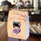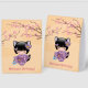 Vector illustration of a cute oriental girl with black cat ears in a purple kimono dress holding a goldfish in a plastic bag filled with water. The girl's black hair is decorated with purple bows and cat bells. Girls with cat ears are called “Nekomimi” in Japan which literally means “cat ears”. The word "Neko" (cat) is also often used to describe them. This artwork was inspired by traditional kokeshi dolls of Japan.