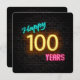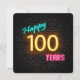 Glowing neon sign on dark brick background for 100th birthday