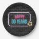 Neon 30th Birthday Marquee On Brick Paper Plate