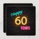 Glowing neon sign on dark brick background for 60th birthday