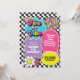 Neon 90's retro Five is a vibe 5th birthday invitation with hearts, daisies, disco ball and chequered background.