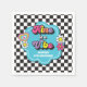 Neon 90's retro Nine is a vibe 9th birthday paper napkins with hearts, daisies, disco ball and chequered background.