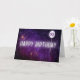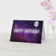 Glowing purple neon Happy Birthday sign with balloon in fireworks for 95th birthday.