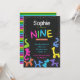 Cute neon colours animal balloons invitation for 9th birthday