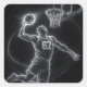 A basketball player wearing jersey number 67 is captured mid-air, ready to dunk, with a glowing outline that highlights the dynamic movement against a dark background