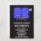 Blue Neon Black 22nd birthday invitations Men Sport
